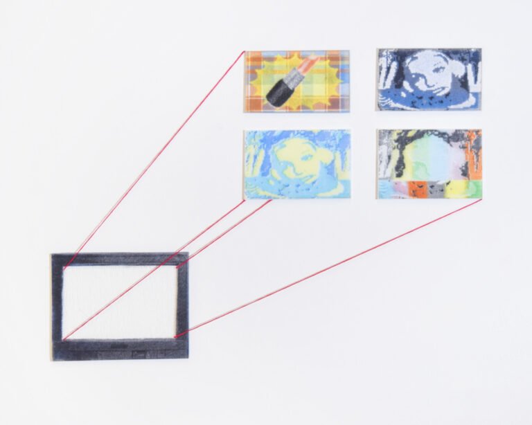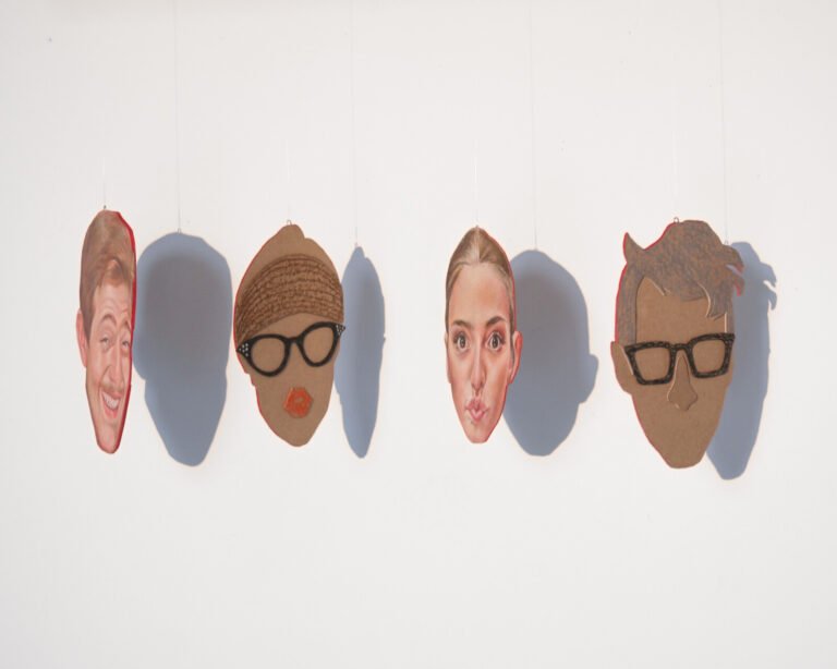 A screen-printed portrait is accompanied by hand-cut and painted details in three compositions. • 16in x 16in